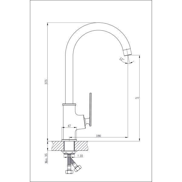 Смеситель для кухни RUSH арт. PL2530-22 с поворотным изливом из коллекции PALM с металлической ручкой, изготовлен из высококачественной латуни и имеет рычажное управление.В смеситель установлен картридж D-30 с керамическими пластинами. Высота смесителя 375 мм. Излив поворотный 186 мм. Высота излива до аэратора 277 мм. Аэратор изготовлен из пластика с нержавеющим корпусом, угол наклона - 12 гр. В комплекте универсальная присоединительная группа для установки на горизонтальную поверхность, гибкая подводка с латунными гайками 45 см - 2шт, фум-лента, индивидуальный пакет, паспорт, гарантийный талон.