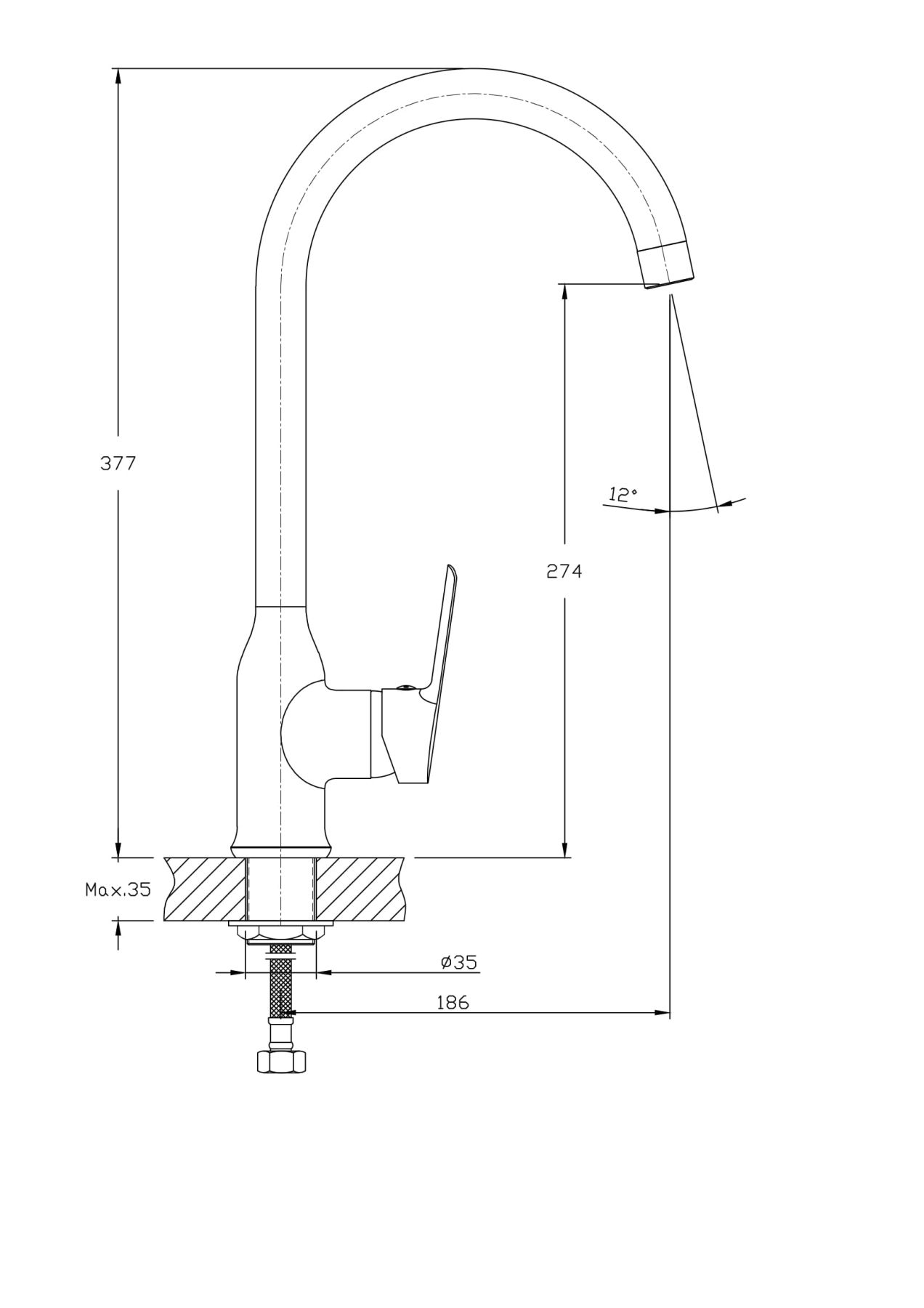 Смеситель для кухни с поворотным изливом RUSH Victori арт.VI7135-23 c металлической ручкой имеет рычажное управление.В смеситель установлен картридж D-35 (RSH102) с керамическими пластинами. Высота смесителя 377 мм. Излив поворотный 360гр, 186 мм. Высота излива до аэратора 274 мм. Аэратор изготовлен из пластика с нержавеющим корпусом, угол наклона аэратора -12 гр.В комплекте гибкая подводка с латунными гайками 35см - 2 шт, присоединительная гайка S-32(34)мм, втулка-31мм, фум-лента, индивидуальный пакет, паспорт, гарантийный талон.