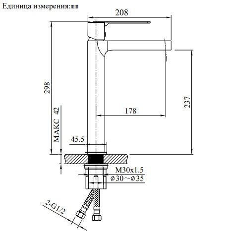 Высота смесителя:29.8