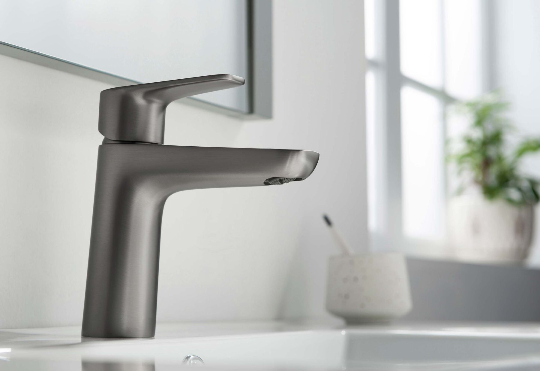 • Однорычажная система регулировки силы струи и температуры воды