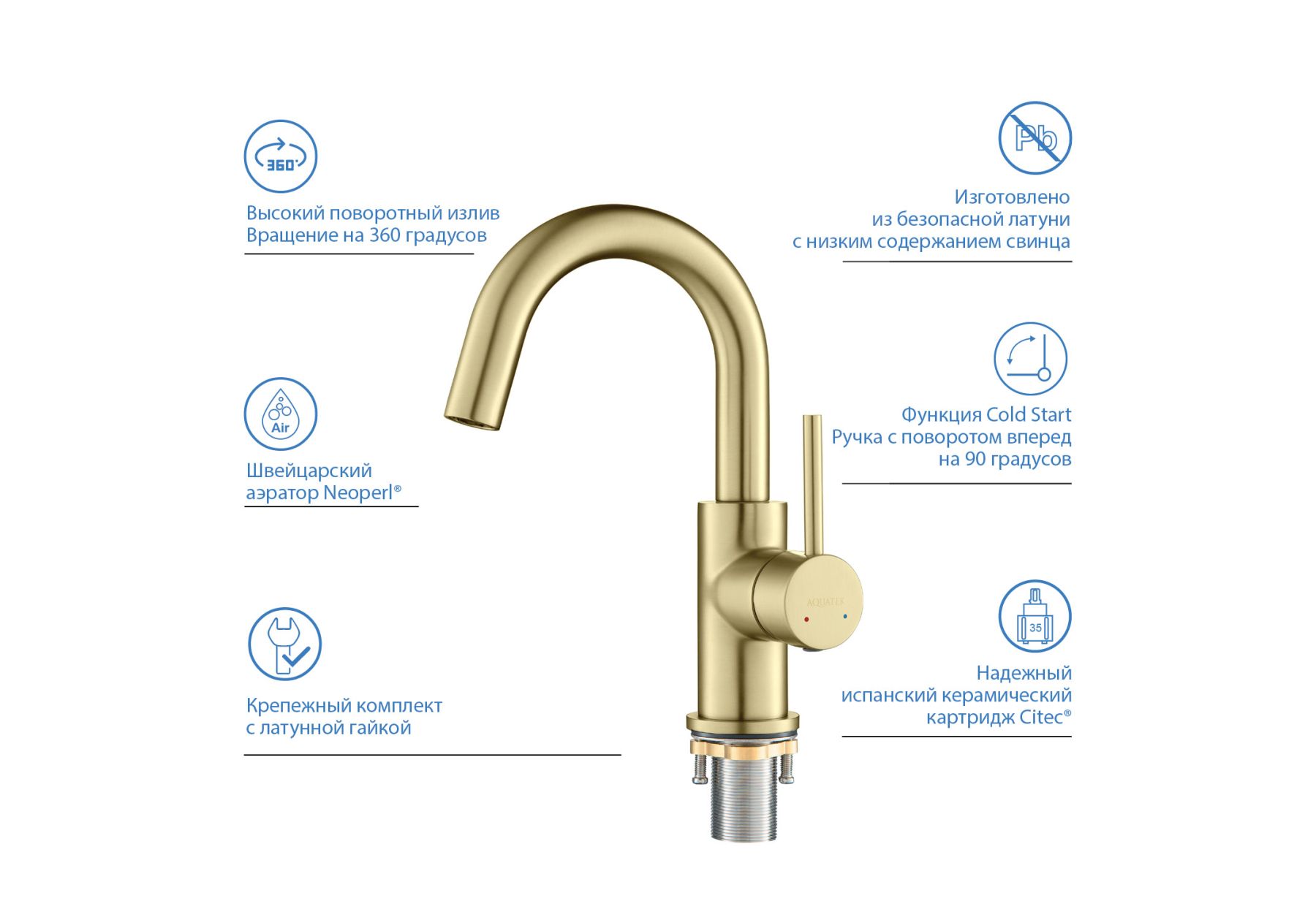 Смеситель для раковины Aquatek Европа AQ1307BG шлифованное золото купить