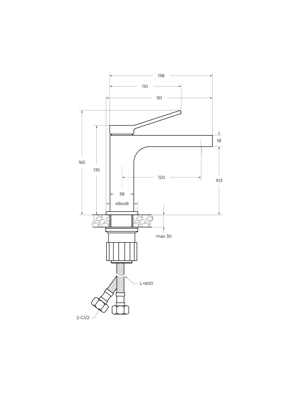 Смеситель для раковины без донного клапана BelBagno ALBANO-LVM-CRM-W0