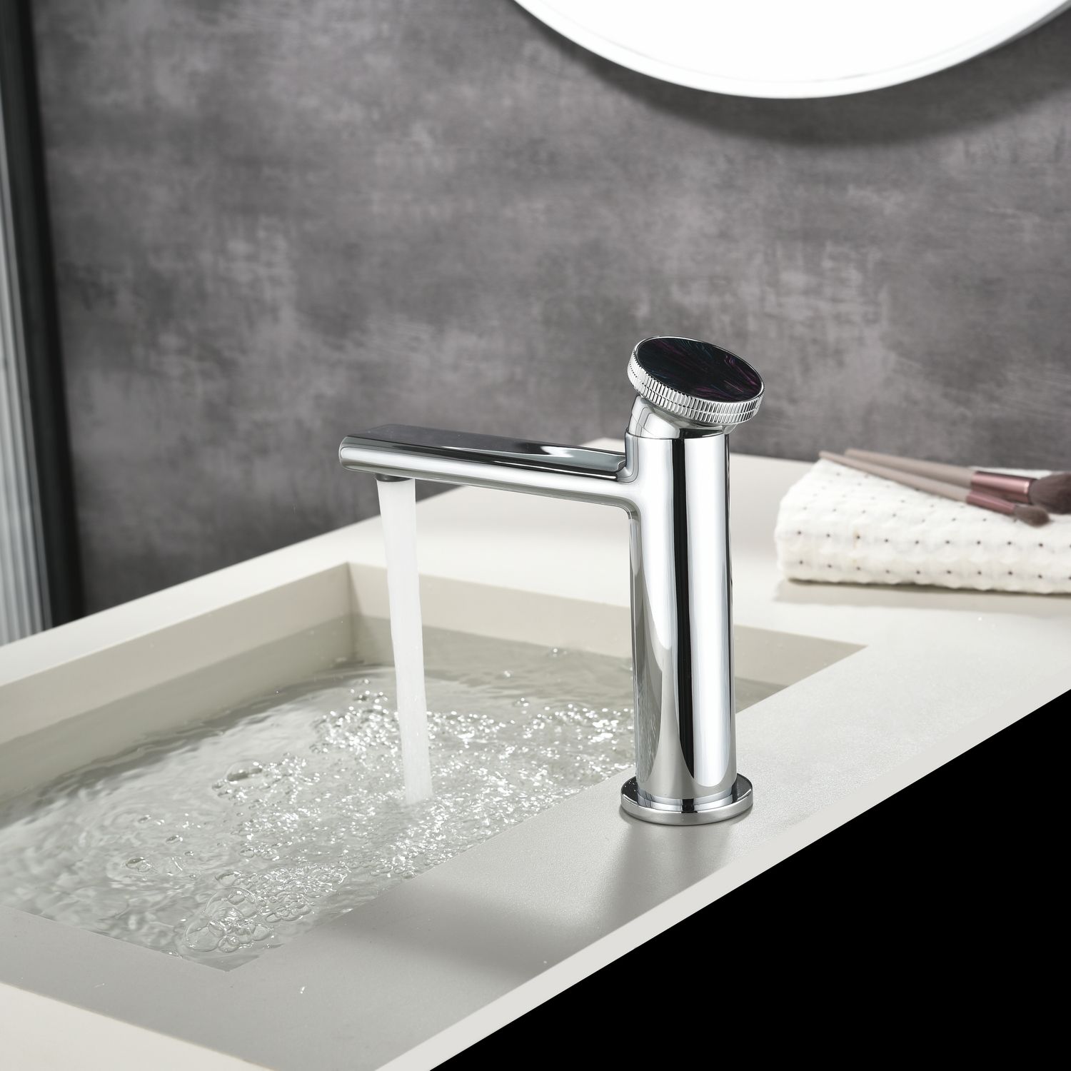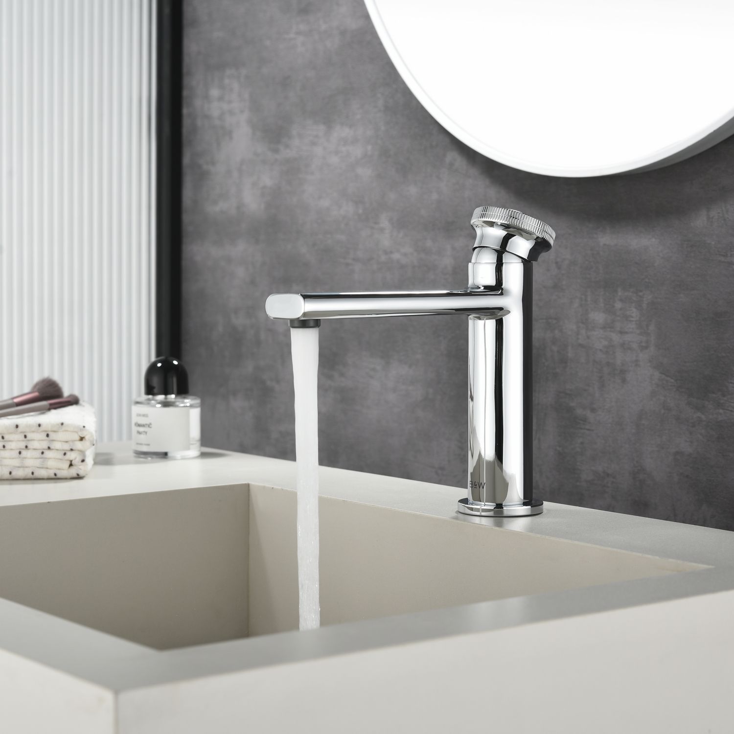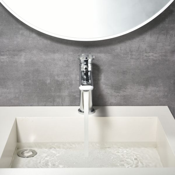 Смеситель для раковины датского производителя Black&White в цвете глянцевый хром. Материал корпуса – сантехническая латунь марки HPB 59,безопасный для здоровья и высокоресурсный сплав.Для настройки температуры установлен керамический картридж прогрессивного типа – давление выдается постоянным , а температура выставляется с помощью круглой ручки с насечками расположенной сверху корпуса. В изделии пересекаются цилиндрические и прямоугольные формы, которые гармонично вольются в современные интерьеры ванных комнат.