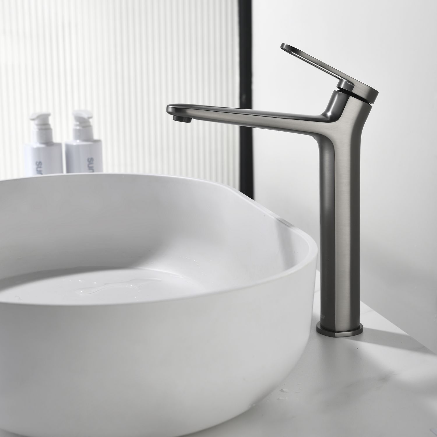 Смеситель для раковины датского производителя Black&White в цвете оружейная сталь. Материал корпуса – сантехническая латунь, безопасный для здоровья и ресурсный сплав, с PWD покрытием. Управление потоками воды и настройка температуры осуществляется с помощью керамического картриджа.Важным функциональным и эстетическим решением стоит отметить возвышение излива на 10 градусов и ручки управления на 25 градусов относительно плоскости– это создает стремительные линии, а также минимизирует количество подтеков на корпусе когда Вы моете руки