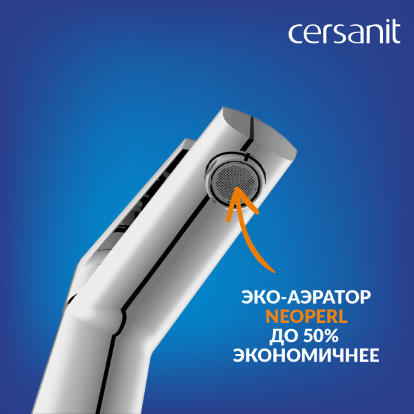 • Аэратор Neoperl пропускает 6 л/мин, что позволяет экономить до 50% воды по сравнению с обычными смесителями. Его конструкция с защитой от известковых отложений обеспечивает ровный поток без брызг.
