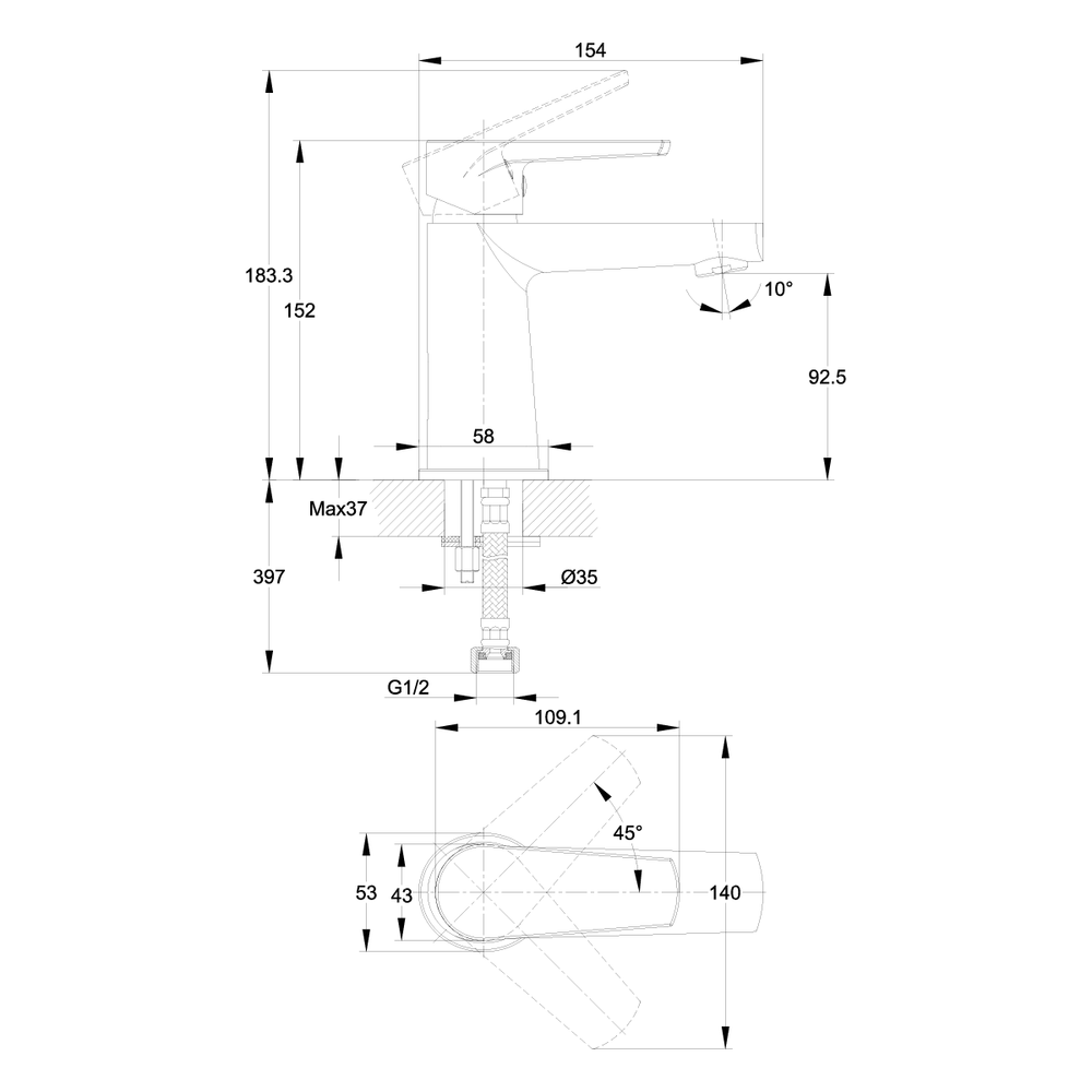 • Смеситель оснащен стандартной подводкой с диаметром подключения 1/2 дюйма, что избавит от проблем при монтаже.