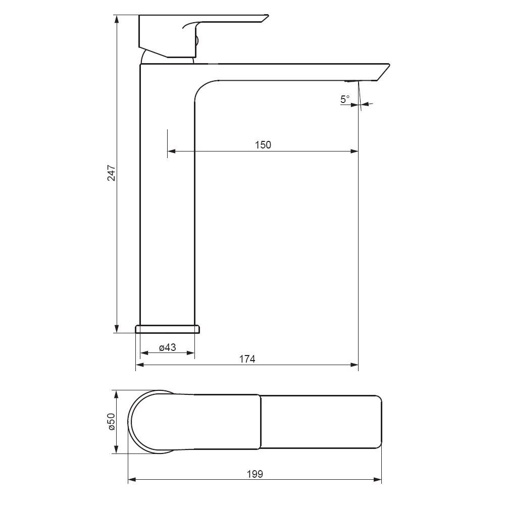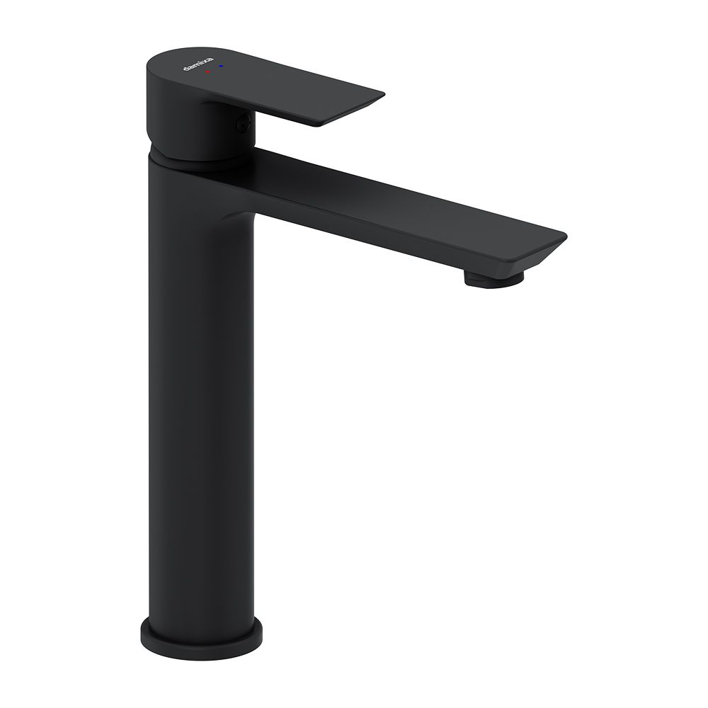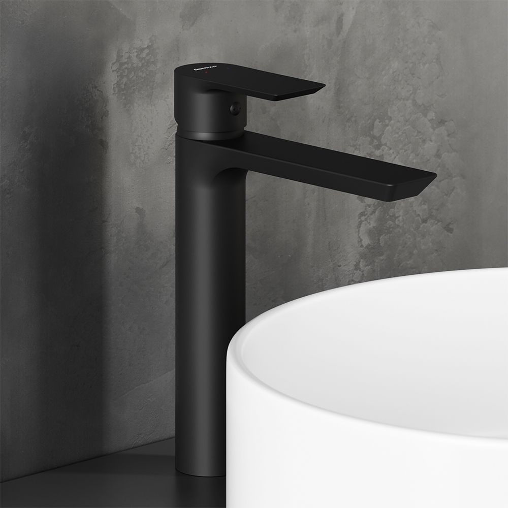 Смеситель для раковины Damixa Apollo 470250300 черныйКорпус смесителя 1 шт.; подводка для воды 2 шт.; комплект крепления 1 компл.; инструкция изделия. Черный, высокий смеситель для накладных раковин, одноручковый, латунь,керамический картридж, ручка и излив имеют плоскую форму