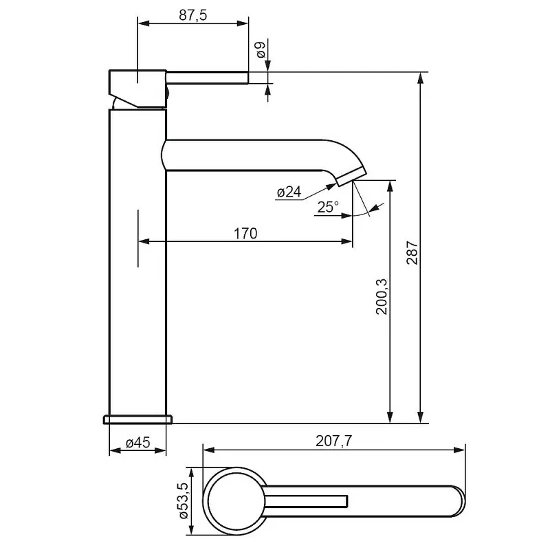 смеситель с высоким изливом идеально впишется в современный интерьер ванной комнаты с накладной раковиной;