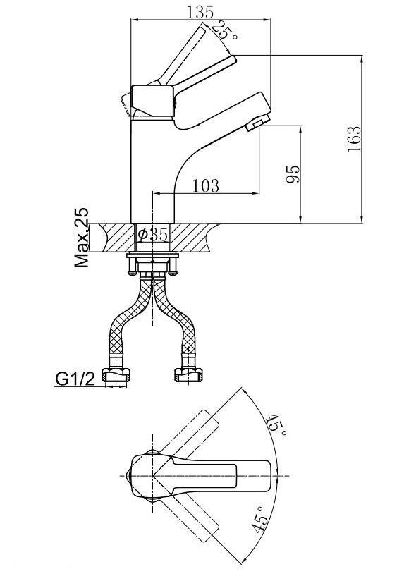 - Гибкая подводка 40 см идёт в комплекте для быстрой установки.