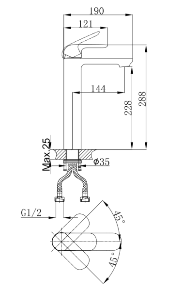Высота смесителя:29