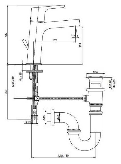 Смеситель для раковины E.C.A предназначен для подачи горячей и холодной воды в ванных помещениях. Модель оснащена керамическим картриджем, обеспечивающим плавный ход рычага смесителя, контроль и точность при выборе напора и температуры воды. Изделие выполнено из латуни, которая отличается прочностью, долговечностью и устойчивостью к перепадам температуры.В комплект поставки входит донный клапан.Дополнительные характеристики: