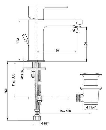 Смеситель для раковины E.C.A. Nita 102188047EX с донным клапаном хром