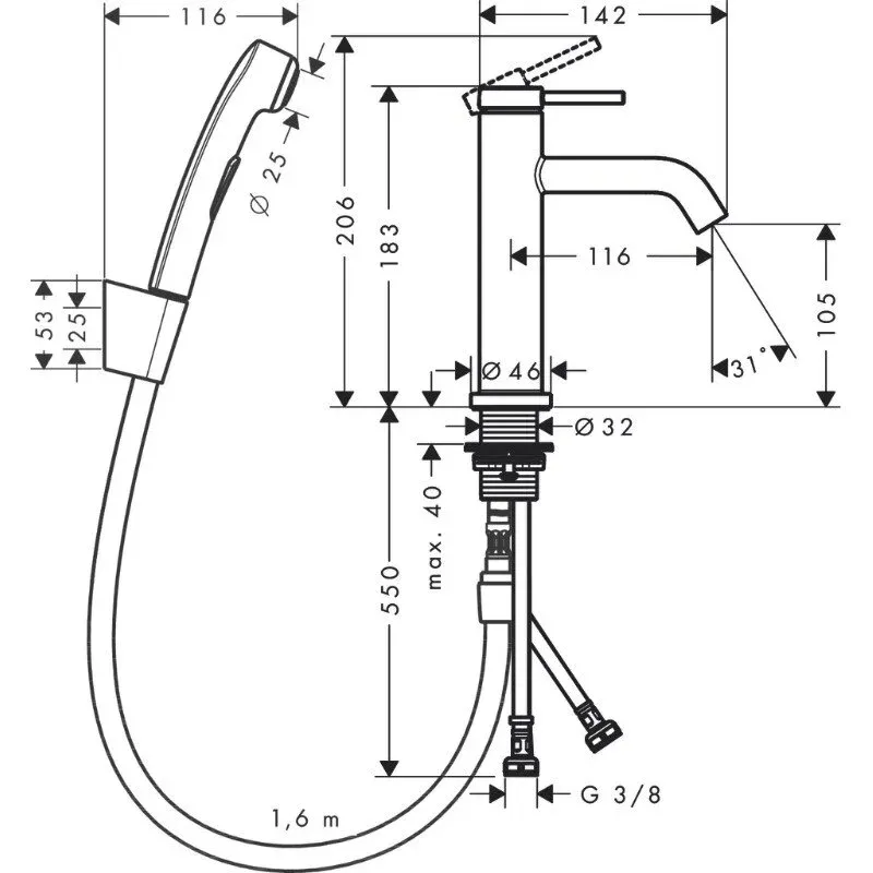 Высота смесителя:18.3
