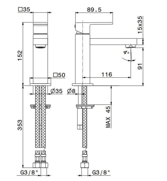66412KM.01.093 Смеситель для раковины FUTURA однорычажный, без донного клапана 3/8, матовый черный