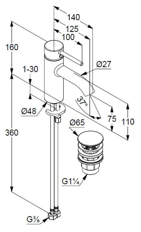- однорычажный смеситель на умывальник 75 DN 15