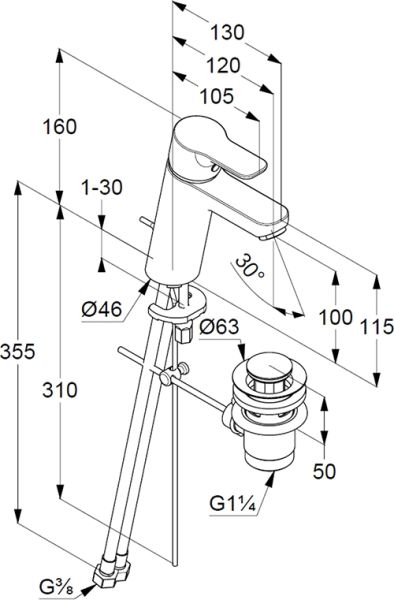 - гибкая подводка G 3/8