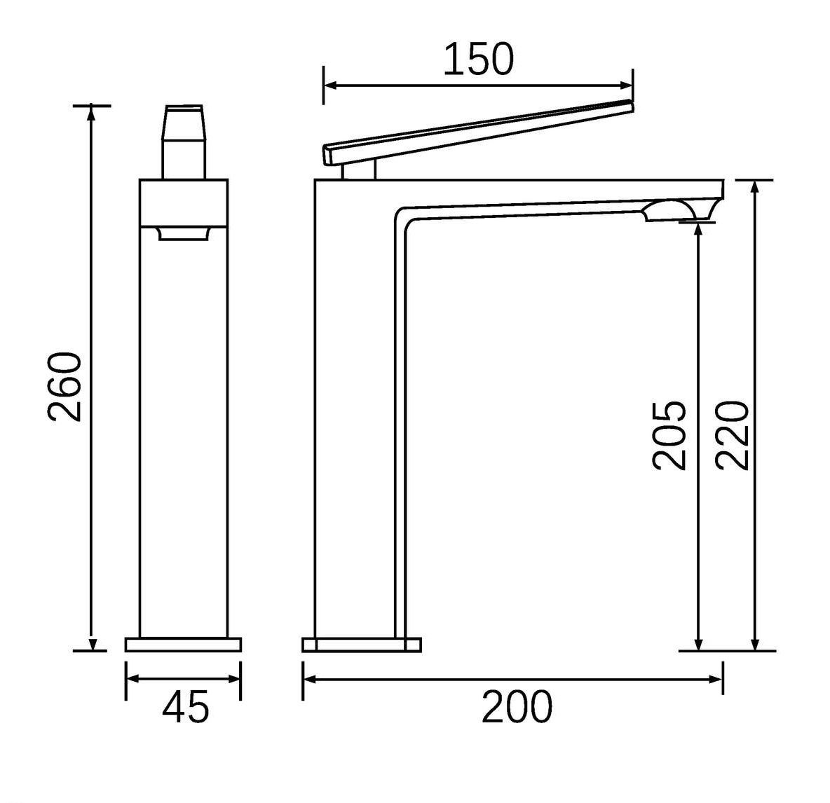 * L излива 205 мм;