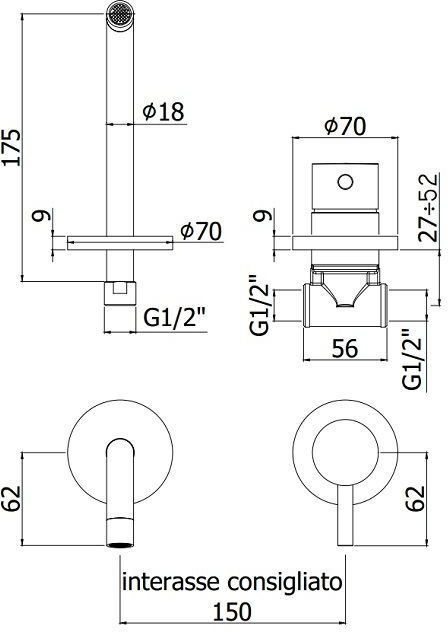 Смеситель для раковины встраиваемый, накладки диам.70мм, излив 175мм, ХромСмеситель для раковины Paffoni Light LIG006CR70 (с внутренней частью) предназначен для раковины. Своим модернистским дизайном и колористикой он внесет в интерьер помещения стильный акцент, подчеркнув его своеобразие. Он выполнен из надежного материала латунь, который не подвержен коррозии, а потому прослужит без ремонтов. Модель является идеальным примером достойного качества. Управление в смесителе предусмотрено однорычажное, что порадует любителей такого типа смесителей. Высокую жизнеспособность и долговечность смесителю гарантирует керамический картридж, отличительной чертой которого является выверенная конструкция - залог безупречной работы в течение долгого времени. Не зря гарантия на смеситель – 5 лет, в течение которого производитель Paffoni заверяет в его бесперебойной работе. Форма излива в смесителе - традиционная, а тип - фиксированный. При покупке учтите, что подводка у смесителя жесткая, что необходимо знать для его монтажа.