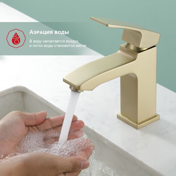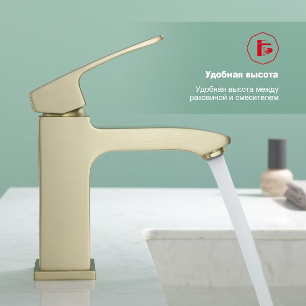 Смеситель для раковины Raglo R01.10.03 золотой сатин