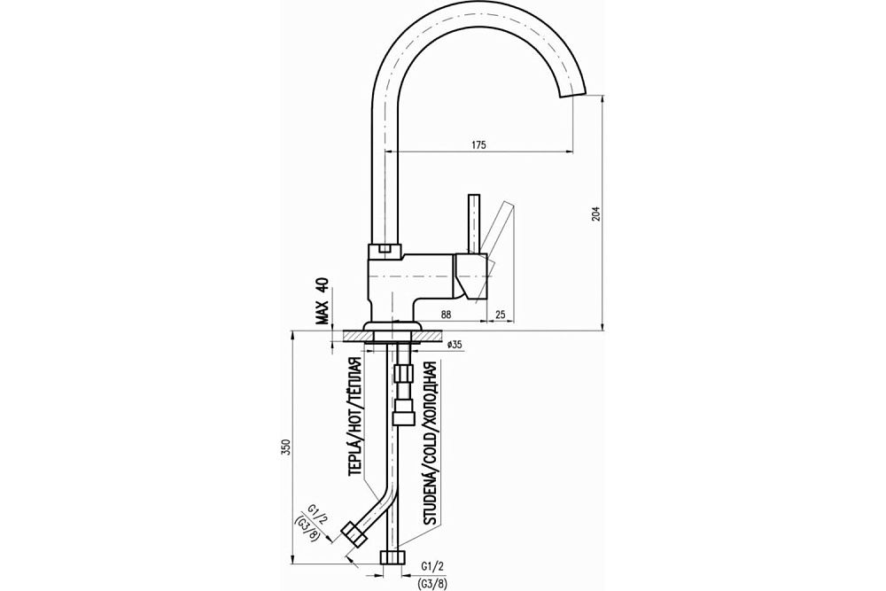 Смеситель для раковины Rav Slezak E908.5/4 хром купить