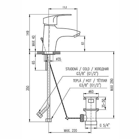 Смеситель для раковины Rav Slezak Kongo K027.5 ХромСовременный смеситель для раковины Rav Slezak Kongo K027.5 прочным монолитным корпусом, с пластмассовым донным клапаном. Регулировка температуры и напора воды происходит с помощью металлического рычага. Керамический картридж 40 мм KEROX. Гибкая подводка длиной 35 см позволяет без проблем осуществить подключение смесителя.