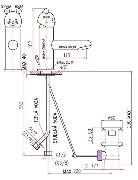Смеситель для раковины Rav Slezak Seina Junior SE326.5 красный синий хром