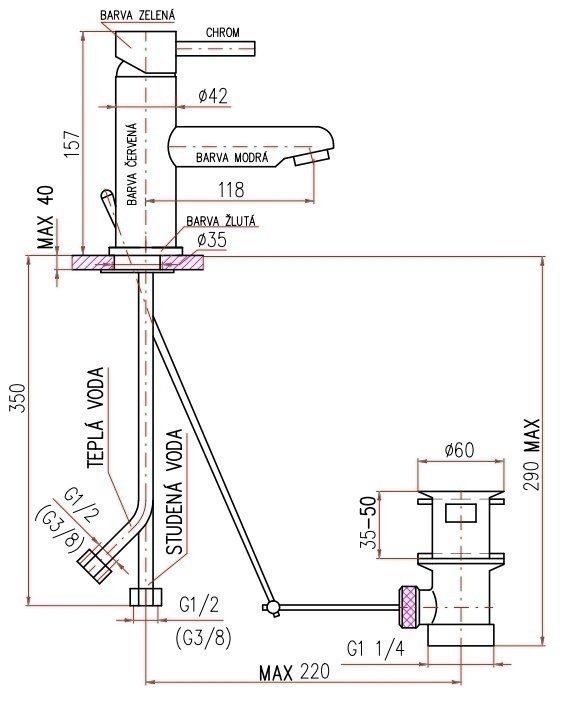 Смеситель для раковины Rav Slezak Seina Junior SE426.5 красный синий зеленый