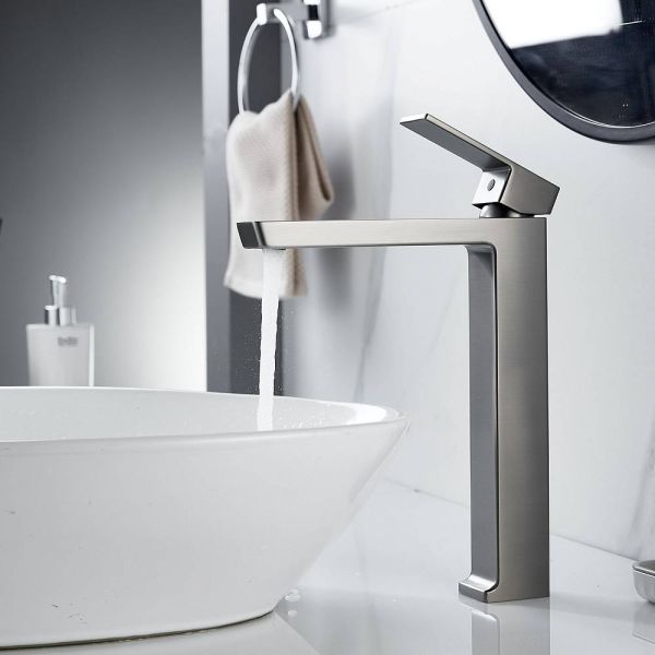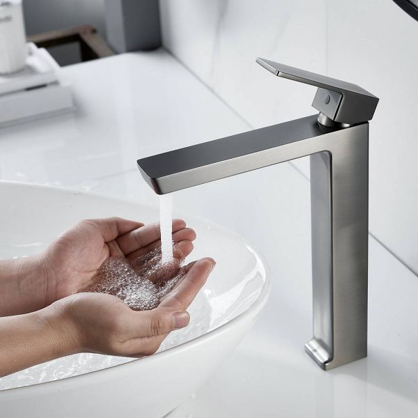 Смеситель для раковины высокий Rose R18T R1811T-1, оружейная сталь.Материал: латунь.Управление: рычажное.Стилистика дизайна: Современный стиль.Подводка: гибкая, 1/2" .