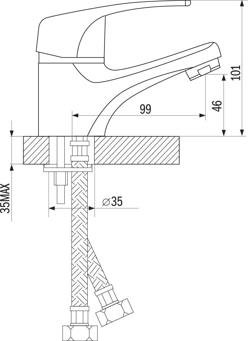 Смеситель Rossinka D40-11 для раковины. Пластиковый аэратор с функцией легкой очистки, керамический картридж 40 мм. Гибкая подводка 30 см – 2 шт.Присоединительная группа для горизонтального крепления.