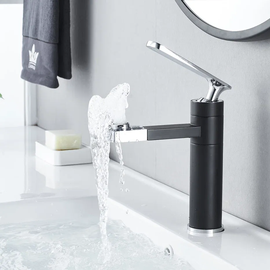 Смеситель для раковины Shevanik S6601H с поворотным носиком чёрный/хром купить