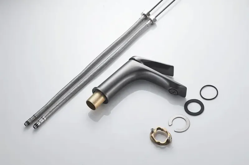 Смеситель для раковины Shevanik S9101T, оружейная сталь.Стилистика дизайна: Современный cтиль.Монтаж: на раковину.Излив: традиционный, фиксированный.Подводка: гибкая, 1/2" .Материал: латунь.