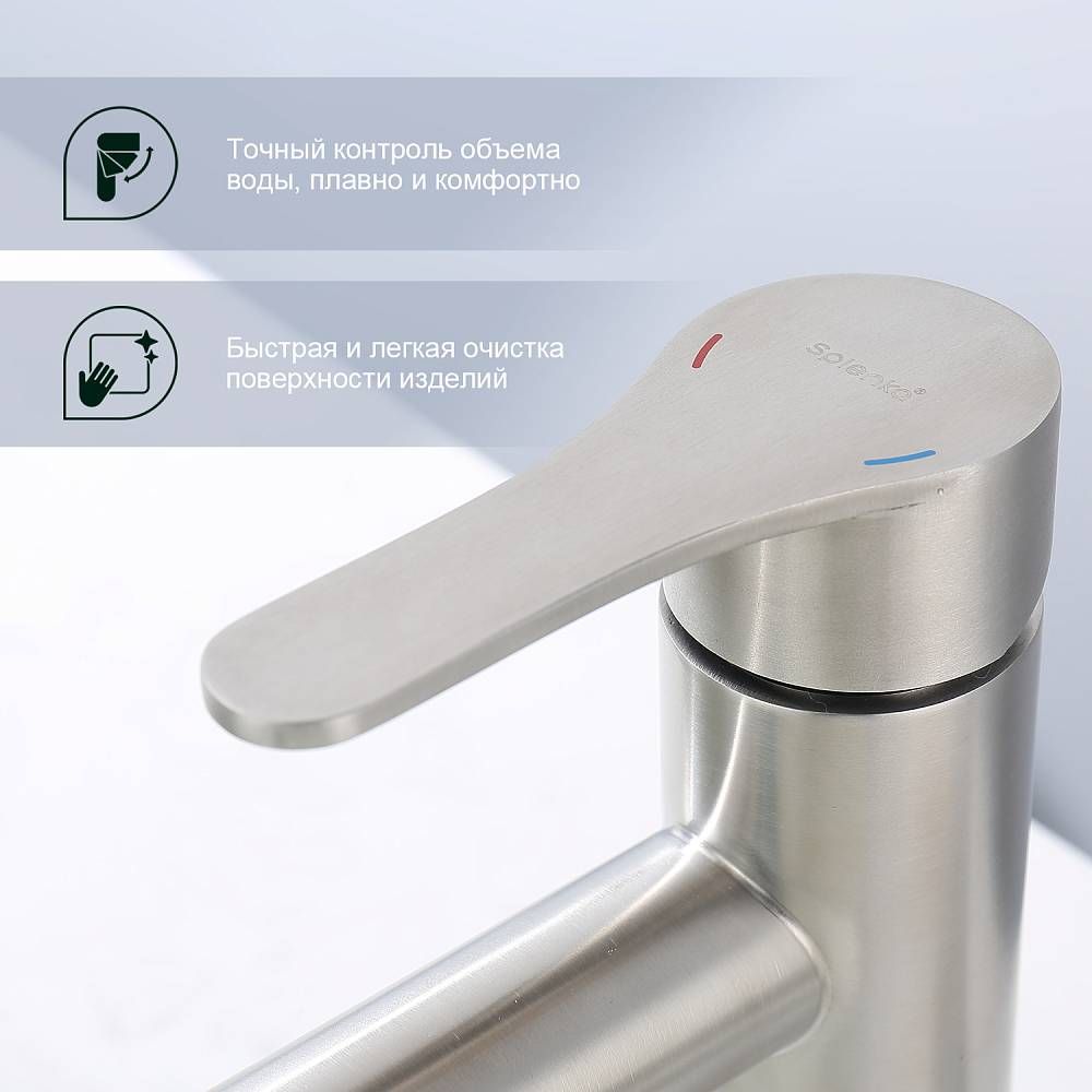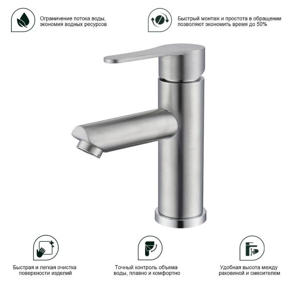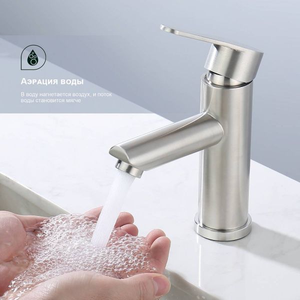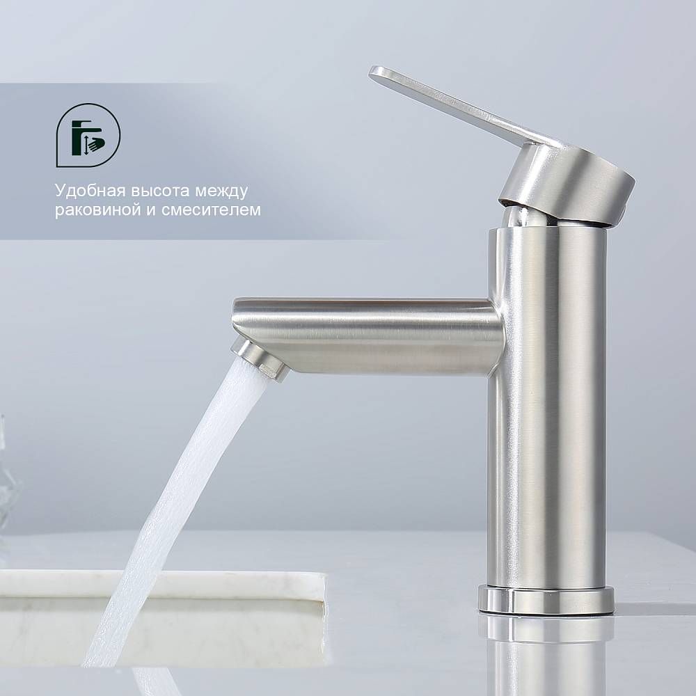 Смеситель для раковины Splenka S223.10.05, сатин. Смеситель для раковины нержавеющая сталь, округлой формы. Смеситель с креплением на гайке. Все для монтажа и эксплуатации есть в комплекте. Гарантия 5 лет.