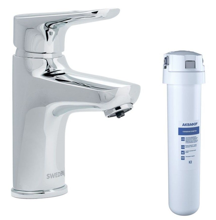 Смеситель для раковины Swedbe Venado Plus K1615S в комплекте с фильтром Аквафор Кристалл Соло хром