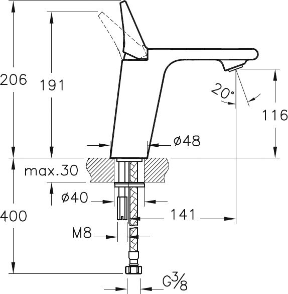 Высота смесителя:20.6