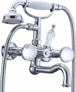 Смеситель Boheme Brillante Presente 354 для душа важнейший предмет сантехники в любой ванной комнате. На душевую безупречно впишется смеситель Boheme Brillante. Двухвентильные смесители – это классическая модель, внутри которой установлены две кран-буксы.Латунь, кристаллы Swarovski из которой произведен смеситель Boheme Brillante 345 отличается высокой прочностью и произведена без использования вредных компонентов. Конструкция модели Boheme Brillante позволяет бесподобно установить смеситель на стену. Смеситель для душа Boheme 345 выполнен в стиле ретро, что великолепно прослеживается в его форме. Марка Boheme, родиной которой, является Италия, создает смесители качества с высокотехнологичного оборудования, благодаря чему смесители отличаются долговечностью и надежностью. Смеситель Boheme Brillante Presente 354 для душа принесет комфорт, как в компактную ванную комнату, так и в большой санузел.