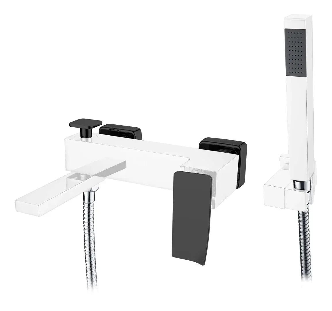 Смеситель Boheme Q для ванны, с душевым гарнитуром, хром, черный, 143-CRB.2