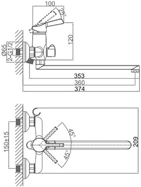 Длина излива, см:36