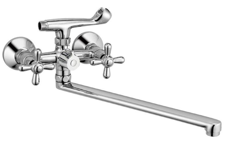 Диаметр декоративных чашек 70 мм.Душевой гарнитур в комплекте.Межосевое расстояние (расстояние между выходом горячей и холодной трубы) 150 мм.Данное расстояние изменяется за счет входящих в комплект эксцентриков на 10 мм в большую или меньшую стороны.