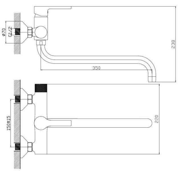 Керамический картридж 35 мм.Диаметр декоративных чашек 70 мм.Душевой гарнитур в комплекте.Межосевое расстояние (расстояние между выходом горячей и холодной трубы) 150 мм.Данное расстояние изменяется за счет входящих в комплект эксцентриков на 15 мм в большую или меньшую стороны.