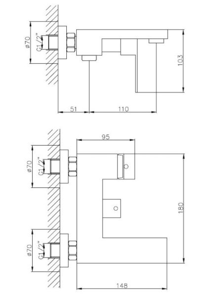 Керамический картридж 35 мм.Диаметр декоративных чашек 70 мм.Душевой гарнитур в комплекте.Межосевое расстояние (расстояние между выходом горячей и холодной трубы) 150 мм.Данное расстояние изменяется за счет входящих в комплект эксцентриков на 10 мм в большую или меньшую стороны.