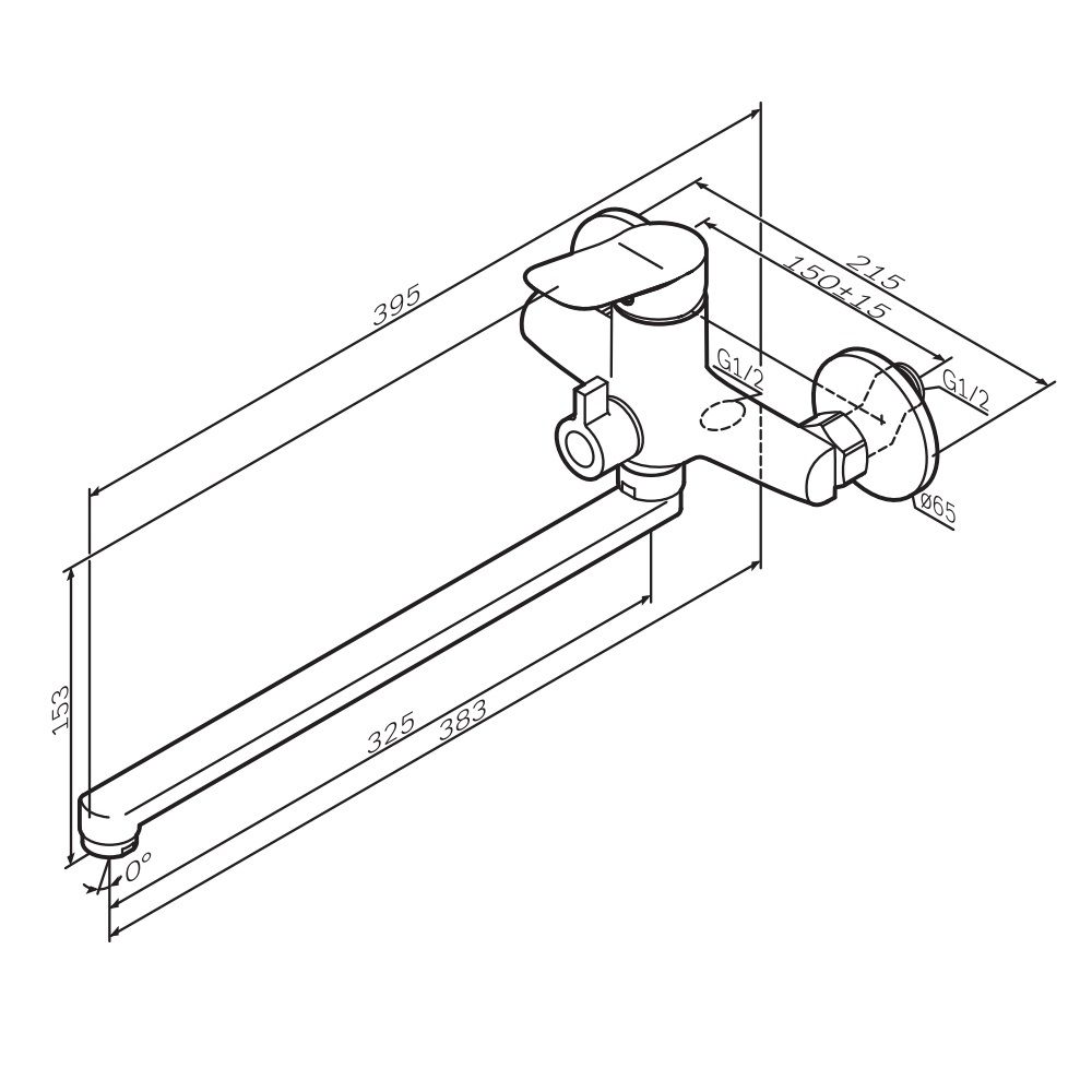 Смеситель для ванны и душа, с длинным изливом 325 мм