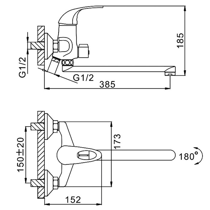 Способ монтажа:На два отверстия, Настенные