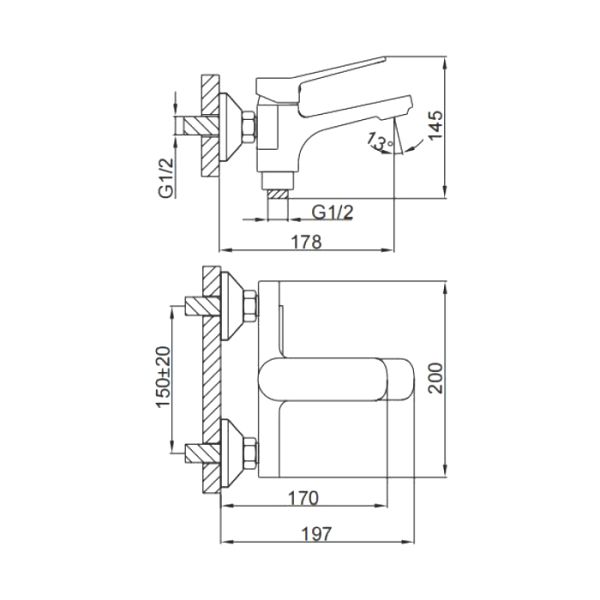 Способ монтажа:На два отверстия, Настенные