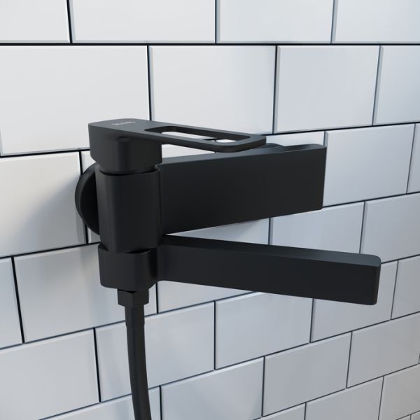 Смеситель для ванны Slide в актуальном черном цвете со складным изливом — стильное функциональное решение без лишних деталей, подойдет и для ванны, и для душевой кабины. Отверстие-петля на ручке выполняет декоративную и при этом практичную роль — ее легко захватить даже намыленной рукой и отрегулировать напор или температуру. Без душевых аксессуаров в комплекте.