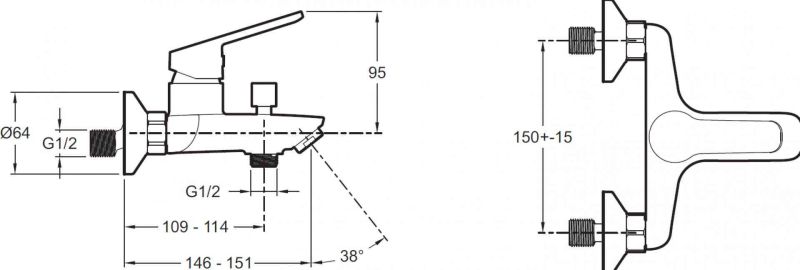 - Поток воды 22 л/мин для ванны