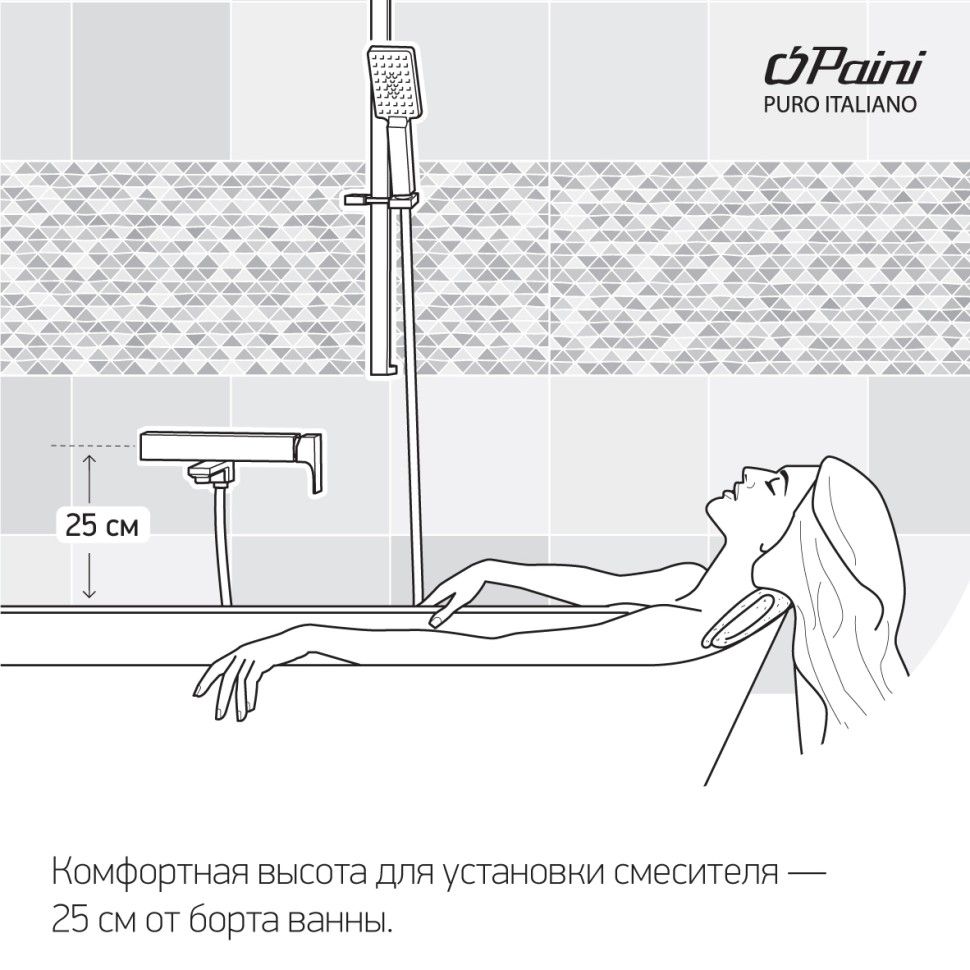 Однорычажный смеситель для ванны коллекции BARI - новинка итальянского бренда PAINI. Прямоугольный массивный корпус контрастирует с изгибом рычага. Этот дизайн будет актуален долгие годы. Компактный размер смесителя позволяет установку в санузел любого размера. Четкие линии и выверенные пропорции BARI позволяют сочетать эту коллекцию с интерьерами в эко-стиле, органично смотрятся в стиле хай-тек или внесут завершающую деталь в санузел в стиле лофт.Итальянское качествоПять лет гарантии качества от производителя сантехники для дома с более чем 60-летней историей.Надежное покрытиеЛатунный корпус смесителя для раковины, устойчивый к механическим и химическим повреждениям. Технология двойного покрытия (никелирование и хромирование) для цвета хром CR.Качественные комплектующие Аэратор Neoperl насыщает струю кислородом, увеличивает напор, экономя воду. Сеточка очищается пальцем. Nuovo Galatron - керамический картридж, обеспечивающий долгую службу смесителя.Поворотный (флажковый, рычажный) дивертор смесителя для ванной PAINI не среагирует на перепад давления воды и внезапно не переключится с душевой лейки на излив.
