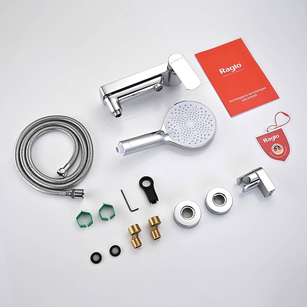 Смеситель для ванны Raglo Материал: латунь.Управление: однорычажное.Механизм: керамический картридж.Излив: поворотный. Аэратор.Форма ручного душа: круглая.Количество режимов струи ручного душа: 3.Отверстия для монтажа: 2.Монтаж: на стену.