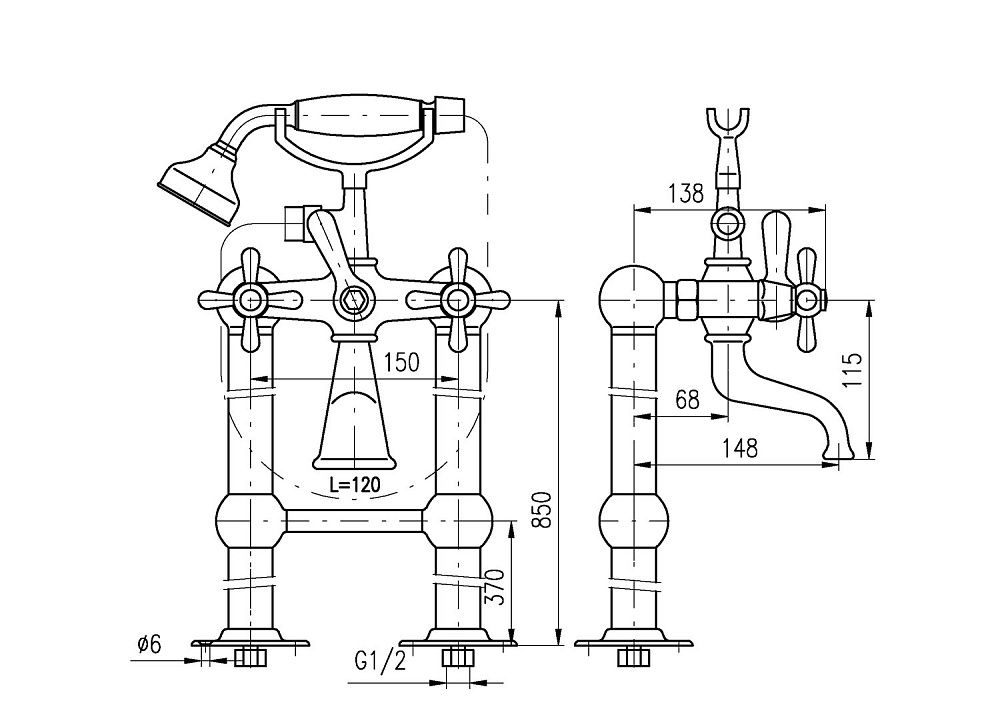 Смеситель для ванны Rav Slezak Morava Retro MK150.5/2CMATSM черный