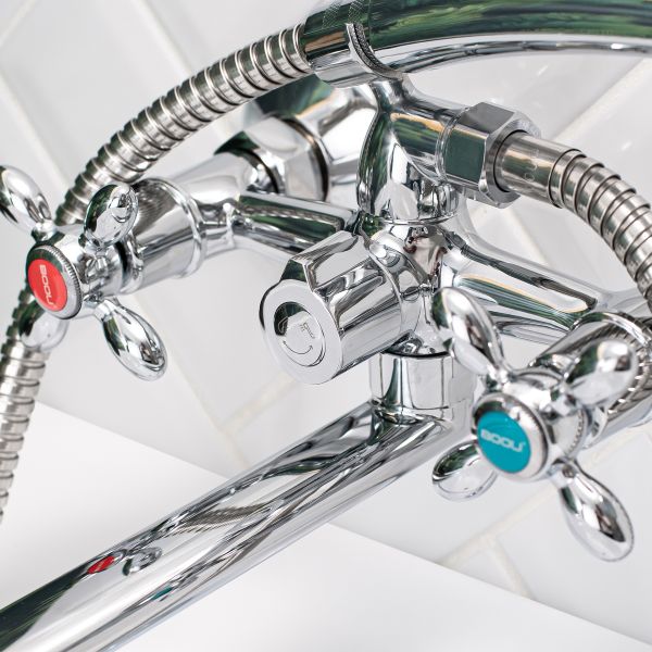 Стильный смеситель с двумя рукоятками Торговой марки BOOU избавит от лишних трат и поможет освободить место в ванной комнате. Модель оснащена длинным прямым изливом, что позволяет удобно использовать его над раковиной и прилегающей к ней ванной. В ком-плекте удобная трехрежимная лейка с гибким шлангом и настенный держатель.