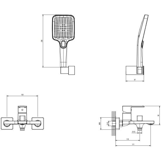 Смеситель для ванны с душем DQ Dortmund короткий излив хром (DA1713201)